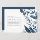 Unsere Wild-Azure-Begleiter-Party-Einladung zeigt Ihre Interaktion-Party-Details, die durch das winterfarbene Blattwerk in eisigen Blautönen hervorgehoben werden.