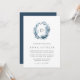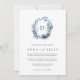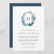Unsere Braut-Blaus Monogramm-Einladung zeigt Ihren Single erste Monogramm oben, umrahmt von einem ovalen Kranz von winterfarbenem Wasser-Blattwerk in eisigen Blautönen. Ein modernes und elegantes Ambiente im botanischen Trend für Winterhochzeiten in schick-blau-weiß.