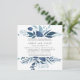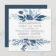 Unser Wild Azure Probe Dinner Einladung in einem einzigartigen quadratischen Format umrahmt Ihre Zeremonie Probe und Feierlichkeiten Details mit einer Ober- und Untergrenze von winterfarbenem Wasser und Blätter in eisigen Blautönen.