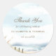 Ein eleganter, moderner und klassischer Hochzeitsbegleiter mit einem nautischen Thema, dem Dankeschön-Aufkleber mit einer traumhaften Aquarellmalerei von einer wilden Strandecke mit Gras- und Strandzaun, sanften Wellen und einem blauen sonnigen Himmel. Es bietet auch klassische Typografie mit moderner Touch und elegante Kalligraphie. Ideal für einen Frühling, Sommer oder Hochzeit im Herbst am Strand, am Meer, am See oder an einem beliebigen Ort gibt es Wasser - und vielleicht auch Strandzäune, für ein paar, die den Strand, das Meer, das Meer, die Natur, das Meer, die Meereswelt, Kunst und Malerei Stil und moderne klassische, aktualisierte und minimalistische einfach, aber elegant.