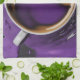 The design is a digital and it's all about coffee but with a twist a bit wild fantasy is it coffee or purple paint? This towel will make a fun gift idea.
