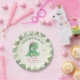 "Ein Wilder ist unterwegs" Teller zum Thema Dinosaurier in Rosa und Grün für die Dusche eines kleinen Mädchens, das Sprinkle oder eine andere Gelegenheit. Entsprechende Einladungen, Beilagen, Schilder, Spiele und Dekorationen finden Sie in meinem Zazzle Shop. Passend zur Pink Baby GirlShower Dinosaur Suite