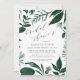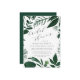 Unsere Braudusche im Wildwald lädt Sie zu edlen Brautparty-Details in schick-schwarz, gerahmt durch lackiertes Wasserfarbenfolien im Jägergrün. Ein frischer Einschlag auf den botanischen Trend mit winterlichen Blätter und eleganten Kalligrafieakzenten, die sich perfekt für die Brautpartys im Winter oder Frühjahr eignen.