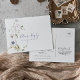 Diese wilde waldblühende Speisekarte uAwg postcard ist perfekt für eine rustikale Hochzeit. Dieses Design zeichnet sich durch handbemalte Aquarelltöne in Weiß- und Blautönen aus, Blume mit grünem Blattwerk.