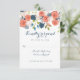 Eine hübsche Illustration schmückt die Hochzeitsapplikationskarte im Frühjahr oder Sommer, die mit Aprikosen- und Korallenranunkulus-Blume, Blüten und Rosa Kirschblüten, blauen Blütenknospen und verschiedenen Grünpflanzen geschmückt ist. Koordination des Aprikosenstripmusters auf der Rückseite. Erhältlich auch in zusätzlichen Formatoptionen. Das trendige und zeitgenössische Gartendesign ist ideal für Hochzeiten im Frühjahr, Sommer oder im Freien.
