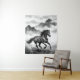 This powerful wild horse tapestry features a majestic stallion galloping freely through misty mountain meadows with dramatic layered peaks rising in the atmospheric background. Created with flowing black and white ink wash painting techniques, the artwork captures dynamic movement, detailed muscle definition, and flowing mane texture with splattered ink effects that add energy and motion. Perfect for horse enthusiasts, nature lovers, outdoor adventurers, and anyone drawn to the untamed spirit of wilderness. This premium quality tapestry (50" x 60") is ideal for cabin decor, rustic home aesthetic, dark academia style, nature-inspired offices, or as a meaningful gift for equestrians, hikers, and wildlife photographers. The monochrome composition brings the powerful presence of mountain freedom into any space, creating a bold, inspirational, and contemplative atmosphere.