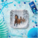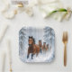 A herd of chestnut colored horses gallop through a breathtaking, snowy forest, their powerful movements creating a stunning contrast against the serene, snow-covered trees that envelop the scene in majestic beauty