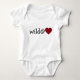 Dieser Baby-Ramper enthält die Phrase "Wild im Herzen", repräsentiert durch das Wort "wild", gefolgt vom Vorzeichen und einem Krimsonherz.