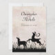 Silhouette Hirsch auf Wiese mit Sonnenuntergang Einladung Hochzeit.