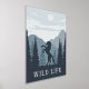 Eine wunderschöne Waldlandschaft mit einem Pferd im Vordergrund. Dunkelblau und grau dominieren