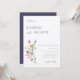 Wilde Wiesenblume, Einladung zum Hochzeitsfeiern. Farbenfrohe Aquarellbouquet mit Wildblume Farbabdeckung in marineblau.