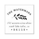 Die Rücksendeadresse Gummi Briefmarke zeigt Ihre Namen oder Familiennamen, geschwungen über eine Vintag geätzte botanische Zweige Abbildung, darunter Ihre Rücksendeadresse Details.