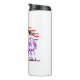 Wildes Bergpferd in Lila Galloping vorbei an den Bergen und jenseits des Waldes vor einer abstrakten amerikanischen Flagge.