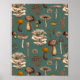 Wild Mushrooms on pine green Poster