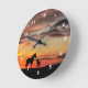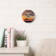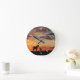 Wild Mustang Mare and Foal Silhouette With Sunset Runde Wanduhr