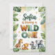 Adorable Safari Geburtstagsveranstaltung "Wild One" mit Aquarelldschungeltieren (Löwe, Giraffe, Elefant, Zebra) mit tropischen Blätter. Perfekt für Geburtstagsfeiern! ✨ Sofia auf Vorderseite + Rücklehne für Party Details ✨ Hochwertiger Druck auf Premium-Karton ✨ Kann mit JEDEM Namen auf Anfrage erstellen - nur Nachricht an mich! Ideal für Wild One-Themenfeiern, Safari-Party und den ersten Meilenstein des Geburtstages des Babys.