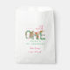 Das Frühjahrsgeschenk für die "Wilde"-Party bietet glitzernde Rosa- und grüne Hibiskus-Blumenmuster, gemustertes ONE und einen Leoparden, der durch die Buchstaben schlängelt.