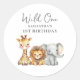 Wild One Safari 1. Geburtstag Klassischer Rundaufkleber. Einfach den Text ändern. Niedliche Aquarelltiere.