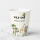 Bring your little explorer’s big day to life with this Wild One Safari Birthday Party paper cup. This adorable watercolor design features a playful jungle scene with a monkey, zebra, leopard, elephant, and giraffe — perfect for your wild one’s birthday celebration.