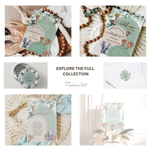 Wild One Safari Animals Baby Shower Einladung