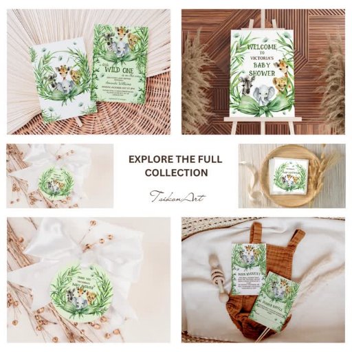 Jungle Safari Tiere Grüne Botanische Baby-Dusche Sammlung