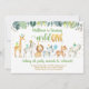 Dieser niedliche Geburtstag lädt zu Aquarellsafari-Tieren mit tropischen Blattakzenten und Imitaten Goldfolie Confetti ein.
