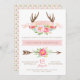 Mädchen wilden ein Geburtstagsfeier Einladungen mit rustikalen Blumengestühlen und Pfeil mit Namen Banner und Koordination Stammeshintergrund. Sie können diese hübschen Mädchen Stamm-Geburtstagsparty Einladungen für Ihre Veranstaltung einfach anpassen, indem Sie Ihre Details hinzufügen. Sie können auch den Text auf dem Antler-Banner ändern.