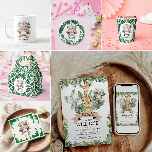 Wild One Tropical Jungle Safari Geburtstag Einladung