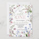 Celebrate your little one with this "She's a Wild One" birthday invitation. Featuring delicate watercolor wildflowers, clover, and blue forget-me-nots. Perfect for a boho garden first birthday. Easily customize with your daughter's name and event details.