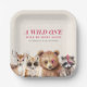 Wild ein Rock'n'Roll / Musikfestival inspirierte das Thema "Woodland Babydusche" mit Bärenkuppe mit rosa Fell und rosa Blitzschlag über einem Auge, Waschbär mit rosa Mohawk und Herz über einem Auge, Fuchs mit blendender Sonnenbrille und Hirsche mit rosa Flecken.
