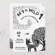 Er ist ein wilder! Feiern Sie das einjährige Jubiläum mit den Einladungen zum Thema Wildtiere aus dem Wald. Volkskunst-Designs und schlichte Schwarz-Weiß-Farben verleihen diesen ein kuscheliges Gefühl.