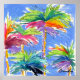 Eine farbenprächtige Abbildung mehrfarbiger Palmen gegen einen blauen Himmel