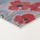 Schöne wilde rote Pappkuchen tanzen in einer warmen Brise im Hütte-Garten. Vor dem Hintergrund eines makellos blauen Himmels schaffen die blühenden roten Blütenblätter, die schwarzen Zentren und die saftigen grünen Stiele und Blätter ein buntes, charmantes Blumendesign im Sommer. Genießen Sie jeden Tag die Schönheit der wilden roten Mohnblumen, wenn Sie diese originale Aquarell wählen.