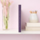 Ein farbenfrohes lila BlumenGästebuch mit gemalten Blume und den Namen der Braut und des Bräutigams darunter.