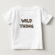Das ist ein Säugling-T - Shirt mit einem Zebra auf der Vorderseite und "Wild Thing" auf der Rückseite.