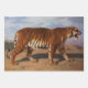 Dieses Design zeigt ein Gemälde von Rosa Bonheur (1822-1899), einer französischen Künstlerin, die am besten als Tiermalerin bekannt war. Es zeigt einen Tiger, der aggressiv auf den sandigen Ebenen Asiens prowliert. Der Mund des Tigers ist offen, und er versperrt seine scharfen Zähne, um seine Grausamkeit zu zeigen. Der Tiger weist typische Markierungen auf, darunter ein lebendiges, orangefarbenes oder rötenes Fell mit dunklen vertikalen Streifen, die sie in ihren natürlichen Lebensräumen verdecken; Bauch, Gesicht und Schwanz sind weiß. Der Tiger scheint nach Beute hungrig zu sein.