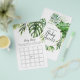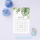 Dieses Baby-Bingo-Spiel aus der tropischen Palme eignet sich perfekt für eine Babydusche zum Thema Strand. Das Design besticht durch eine exotische Auswahl an grünen Bananenpalmen, Farnen, Blattwerk, botanischen Pflanze und Grünpflanzen, die für einen tropischen Sommer sorgen. Personalisieren Sie die Rückseite der Karte mit dem Namen der Mutter-zu-sein-und das Duschdatum.