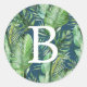 Wild Tropical Palm | Monogramm-Navy-Umschlag Aufkl Runder Aufkleber