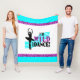 Fleecedecke für Tänzer mit einem Ballerinatänzer, der in einem Tutu und im Text, "ich aufwirft, bin über TANZ! wild". Das "wilde" Wort hat ein Geparddruckmuster auf ihm.