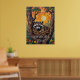 Dieses fantasievolle Gemälde fängt einen Kokon mit seinen Pfoten, die am Rande eines großen Vogelnestes ruhen. Der Ausdruck des Waschbads ist sowohl unschuldig als auch schelmisch, perfekt eingekapselt durch den Text "Niedlich, aber wild", der in einem kühnen, auffälligen gelben Schriftart geschrieben ist. Das Nest selbst ist fasziniert gewebt, mit kleinen grünen Blätter geschmückt, Set vor einem dunklen, strukturierten Holzhintergrund.