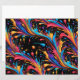 Ein lebendiges und kühn wirkendes Farbmuster, das den Farbspritzer auf einem dunklen, reichen Hintergrund darstellt. Eine atemberaubende und wilde Grafik für jeden Anlass.