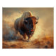 Ein gewagtes Gemälde zum Thema Western eines Wildbisons, das während seiner Fahrt Staub aufwirft und den rauen Power und den ungezähmten Geist der amerikanischen Grenze einfängt.