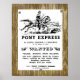 Dies ist ein historischer Flyer für die Firma Pony Express. Ich habe meine originale grafische Holzrahmen und Nägel hinzugefügt. Die Firma Pony Express wollte Reitern, in 10 Tagen von Missouri nach Sacramento im wilden Westen des Landes Post zu liefern. Sie haben immer für junge Männer geworben, die keine Krawatte zu ihrer Familie hatten, weil es eine lange und gefährliche Route war zu reiten. Die Fahrer reisten durch Amerika und reisten mit dem Pferd zurück, um die US-Post zu liefern. Damals erstreckte sich die Route nur auf zwei Staaten, Missouri und Kalifornien, weil die Erholung des Landes Territorien waren. Dies war ein kurz lebendes Unternehmen, weil ein Jahr später auch der Telegraf und die Eisenbahn bald eine Strecke durch Amerika nehmen würden. Im April 2010 jährt sich das Pony Express zum 150-jährigen Jubiläum.