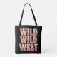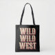 Retro-Stil Grunge "Wild Wild West" Textdesign mit gestreiften Buchstaben in den Farben Gelb, Rot und Beige