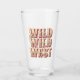 Retro-Stil Grunge "Wild Wild West" Textdesign mit gestreiften Buchstaben in den Farben Gelb, Rot und Beige