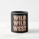 Retro-Stil Grunge "Wild Wild West" Textdesign mit gestreiften Buchstaben in den Farben Gelb, Rot und Beige