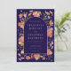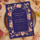 Elegante Wildblume Marsch blau verbrannte Orange, Terrakotta und pfirsichfarbene Hochzeit im Herbst Einladung. Diese bezaubernde, schicke, blumengeschmückte Hochzeitseinladung ist eine atemberaubende Mischung aus Herbstwärme und elegantem Charme. Mit handbemalten, wasserfarbenen Wildblumen rund um einen eleganten Bogen präsentiert die Einladung eine farbenfrohe Farbpalette aus gebrannten Orangen, gebrannten Nummern, Korallen, Orange, Braun, Gelb, Grün, Terrakotta, Korallen, lila und Rosa. Die warmen Erdtöne schaffen eine perfekte Harmonie und machen sie zu einer idealen Wahl für eine Hochzeit im Herbst. Die elegante Schrift und die moderne Typografie bringen eine Touch von Eleganz, während die skurrile Wildblume Wasserfarben rund um das Bogenfenster einen persönlichen, böhmischen Flair zu all Ihren essenziellen Hochzeitsdetails verleihen. Diese einzigartige Einladung, die von der talentierten Künstlerin Catherine Sweetman entworfen wurde, verkörpert den Geist einer gemütlichen, intimen Feier im Herzen des Herbstes. Mit einfach zu personalisierenden Vorlagen bietet es eine nahtlose Möglichkeit, Ihre Hochzeitsinformationen mit Stil und Kunst zu vermitteln. Der Hintergrund in einem reichen Marineblau und Pfirsich, die eine natürliche Wärme verleihen und die wunderschönen Blumen so zum Leben erwecken, dass sie frisch und zeitlos sind.