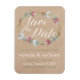 Diese Save the Date Hochzeitsmagnete sind ideal für alle, die eine romantische Hochzeitsfeier auf dem Lande planen. Das Design zeichnet sich durch eine trendige Wildblume Kranz auf einem Hintergrund mit Krafteffekten mit farblich koordinierter Formulierung aus. Das schlichte Design kann personalisiert sein, um Ihre besondere Veranstaltung zu Anzug und wird die perfekte Ankündigung für jedes floral chic Thema Party, einschließlich; Brautparty, Verlobungen, Polterabende, Geburtstagspartys und vieles mehr.