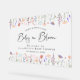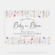 Elegantes, mattiertes, halbdurchsichtiges Babyduschzeichen mit Aquarellfarben von Wildblumen und "Baby in Bloom" in schicker Schrift. Personalisieren Sie sich mit dem Namen der Mami-zu-sein und Dusche Datum in einfacher Typografie.