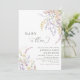 Feiern Sie die Ankunft Ihres Kleinen mit dieser schönen Baby in Bloom Baby Dusche Einladung! Dieses elegante Design mit sanften Aquarellfloralen in Pastellfarben wie Lavendel, Rose, Pfirsich und Creme eignet sich ideal für eine Gartendusche oder eine Dusche im Frühling. Das zarte Skript fügt eine schöne, zeitlose Touch hinzu. Personalisieren Sie es mit Ihren Daten und machen Sie Geschenke einfach mit einem QR-Code auf der Rückseite, der auf Ihre Registrierung verweist. Eine nette und stilvolle Art, Freunde und Familie zu Ihrem besonderen Tag einzuladen!